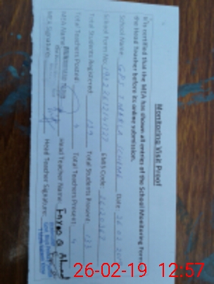 | Certified that this School was Inspected by the Undersigned MEA/DMO Today and the Information Stated Above is as Per Record. | |||||