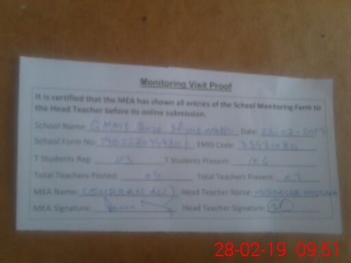 | Certified that this School was Inspected by the Undersigned MEA/DMO Today and the Information Stated Above is as Per Record. | |||||