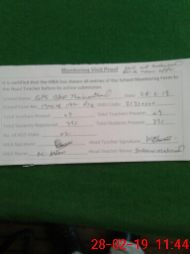| Certified that this School was Inspected by the Undersigned MEA/DMO Today and the Information Stated Above is as Per Record. | |||||