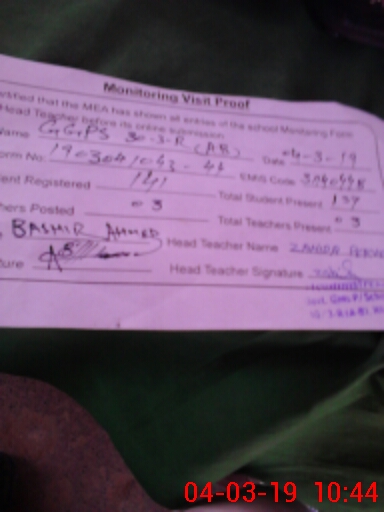| Certified that this School was Inspected by the Undersigned MEA/DMO Today and the Information Stated Above is as Per Record. | |||||
