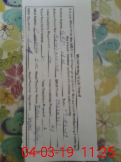 | Monitoring Date: 04-03-2019 | Start Time: 04-03-2019 10:28 AM | End Time: 04-03-2019 11:25 AM | Name of MEA: Ch**** Di**** | |