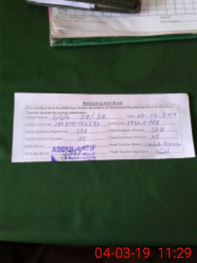 | Attendance Register | Head Teacher | MEA with School | Visit Proof |