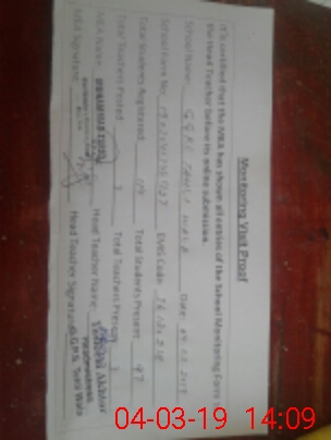 | Attendance Register | Head Teacher | MEA with School | Visit Proof |
