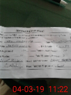 | Monitoring Date: 04-03-2019 | Start Time: 04-03-2019 11:30 AM | End Time: 04-03-2019 11:54 AM | Name of MEA: Al**** Hu**** BN**** | |