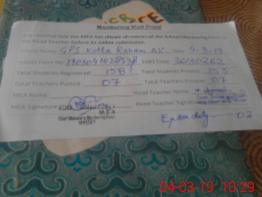 | EMIS Code: 36130262 | Name of School: GPS KOTLA RAHAM ALI LAR MULTAN | |||