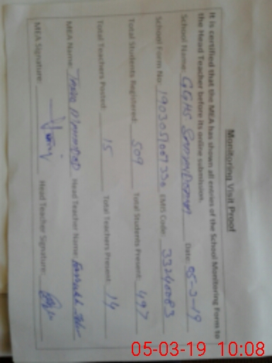| Certified that this School was Inspected by the Undersigned MEA/DMO Today and the Information Stated Above is as Per Record. | |||||