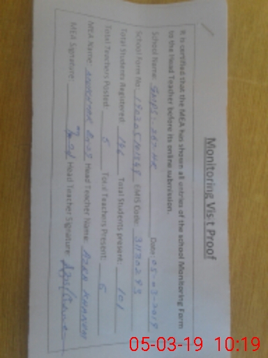 | Certified that this School was Inspected by the Undersigned MEA/DMO Today and the Information Stated Above is as Per Record. | |||||