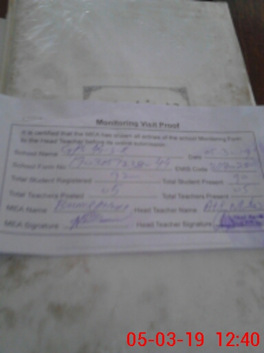 | Certified that this School was Inspected by the Undersigned MEA/DMO Today and the Information Stated Above is as Per Record. | |||||