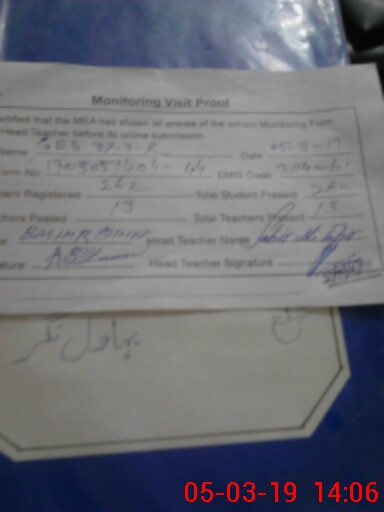 | Certified that this School was Inspected by the Undersigned MEA/DMO Today and the Information Stated Above is as Per Record. | |||||