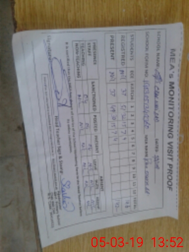 | Attendance Register | Head Teacher | MEA with School | Visit Proof |
