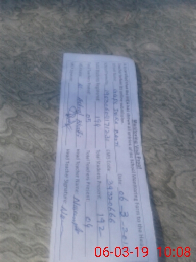 | School Visited by School Health & Nutrition Supervisor (No. of Visits) | 2 | Name1: | M Akram | Name2: | M Akram |