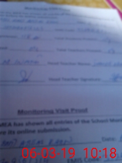 | Attendance Register | Head Teacher | MEA with School | Visit Proof |