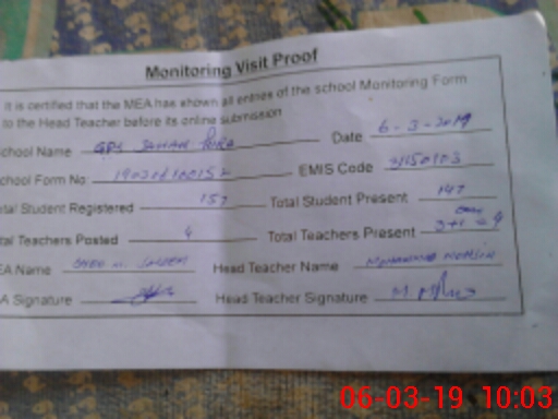 | EMIS Code: 31150103 | Name of School: GPS JAHAN PURA | |||