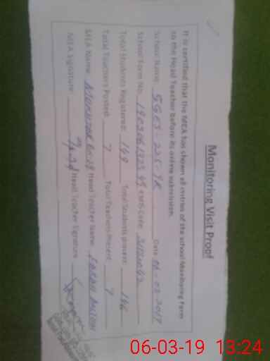 | Certified that this School was Inspected by the Undersigned MEA/DMO Today and the Information Stated Above is as Per Record. | |||||