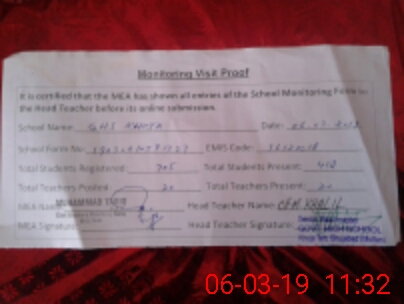 | Certified that this School was Inspected by the Undersigned MEA/DMO Today and the Information Stated Above is as Per Record. | |||||