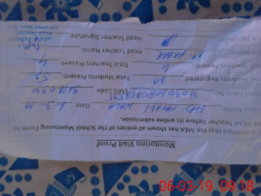 | Attendance Register | Head Teacher | MEA with School | Visit Proof |