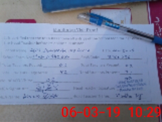 | Monitoring Date: 06-03-2019 | Start Time: 06-03-2019 09:42 AM | End Time: 06-03-2019 10:29 AM | Name of MEA: Kh**** Iq**** | |