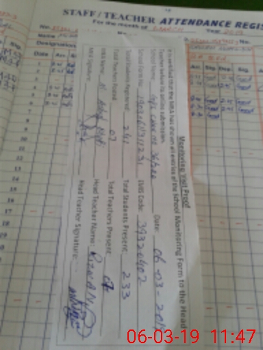 | Attendance Register | Head Teacher | MEA with School | Visit Proof |