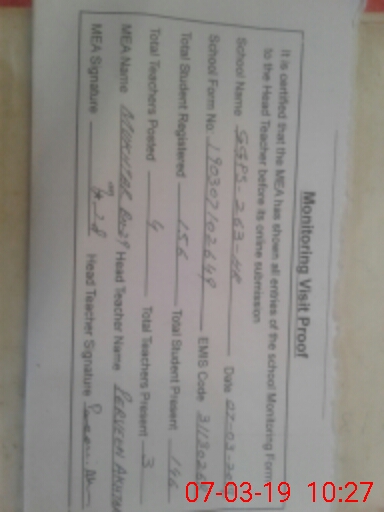 | Certified that this School was Inspected by the Undersigned MEA/DMO Today and the Information Stated Above is as Per Record. | |||||