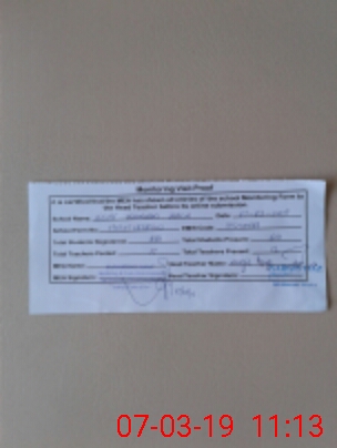 | School Visited by School Health & Nutrition Supervisor (No. of Visits) | 1 | Name1: | MUNAWAR ALI | Name2: | Nill |