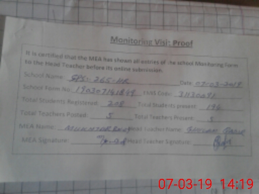 | Certified that this School was Inspected by the Undersigned MEA/DMO Today and the Information Stated Above is as Per Record. | |||||