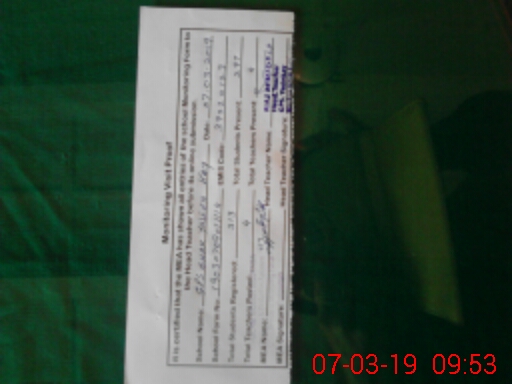 | Monitoring Date: 07-03-2019 | Start Time: 07-03-2019 09:00 AM | End Time: 07-03-2019 09:53 AM | Name of MEA: Gh**** Mu**** Mu**** (R**** | |