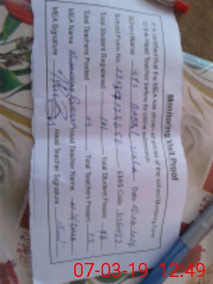 | Attendance Register | Head Teacher | MEA with School | Visit Proof |
