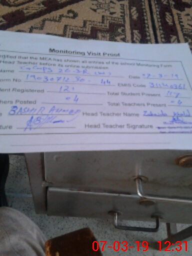 | Name: ZO**** KH**** Designation: (School Headmaster's/Headmistress's) PTC/JV Phone/Cell Number: 03**** |