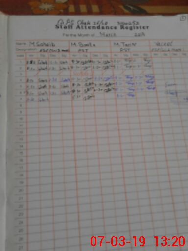 | CNIC | Full Name | Designation | R/C | Absence During Last Calender Month |