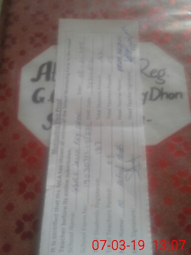 | Name: AY**** HU**** Designation: (School Headmaster's/Headmistress's) S STGENERAL Phone/Cell Number: 03**** |