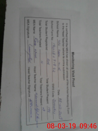 | Certified that this School was Inspected by the Undersigned MEA/DMO Today and the Information Stated Above is as Per Record. | |||||