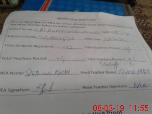 | EMIS Code: 33220362 | Name of School: GPS RORAN WALI SHUMALI | |||