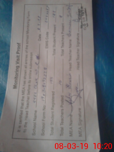 | Certified that this School was Inspected by the Undersigned MEA/DMO Today and the Information Stated Above is as Per Record. | |||||
