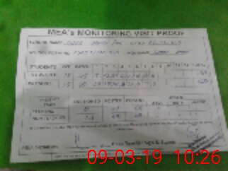 | Monitoring Date: 09-03-2019 | Start Time: 09-03-2019 08:57 AM | End Time: 09-03-2019 10:28 AM | Name of MEA: Sa**** Ah**** | |
