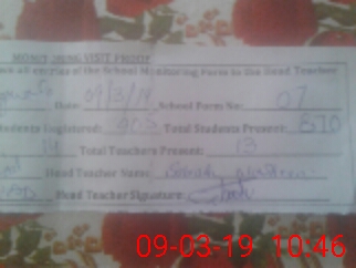 | Attendance Register | Head Teacher | MEA with School | Visit Proof |