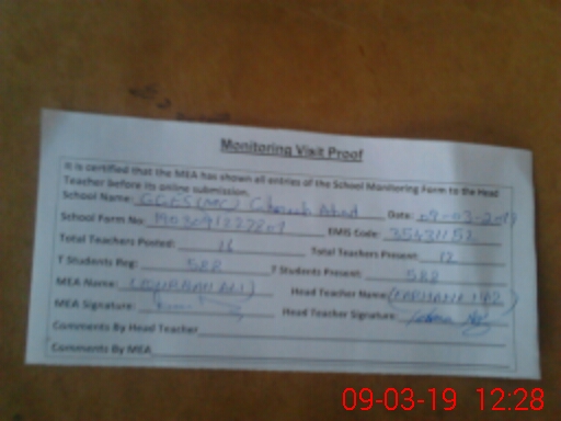 | Certified that this School was Inspected by the Undersigned MEA/DMO Today and the Information Stated Above is as Per Record. | |||||