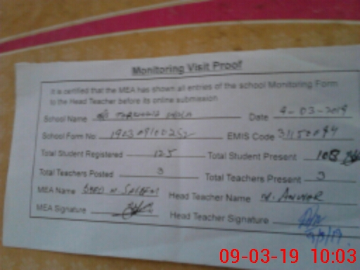 | Certified that this School was Inspected by the Undersigned MEA/DMO Today and the Information Stated Above is as Per Record. | |||||