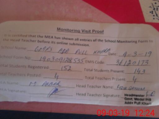| EMIS Code: 36120173 | Name of School: GMPS ADA PULL KHARA | |||