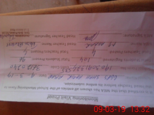 | Certified that this School was Inspected by the Undersigned MEA/DMO Today and the Information Stated Above is as Per Record. | |||||