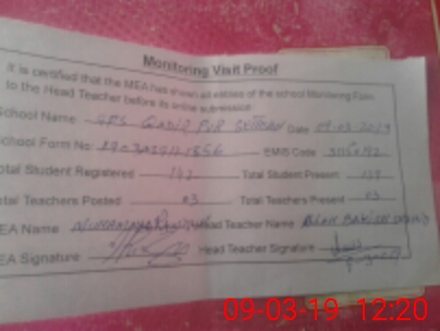 | Attendance Register | Head Teacher | MEA with School | Visit Proof |