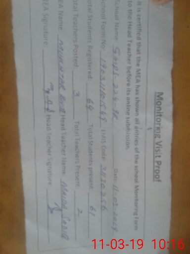 | Certified that this School was Inspected by the Undersigned MEA/DMO Today and the Information Stated Above is as Per Record. | |||||