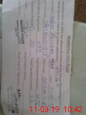 | Attendance Register | Head Teacher | MEA with School | Visit Proof |