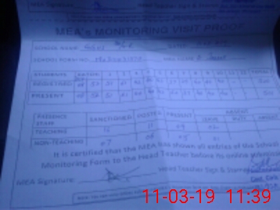 | Attendance Register | Head Teacher | MEA with School | Visit Proof |