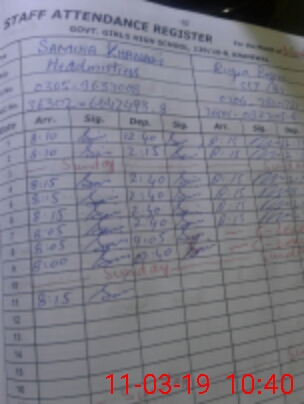 | CNIC | Full Name | Designation | R/C | Absence During Last Calender Month |