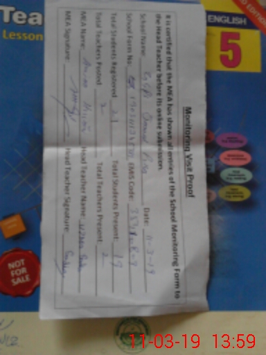 | Attendance Register | Head Teacher | MEA with School | Visit Proof |