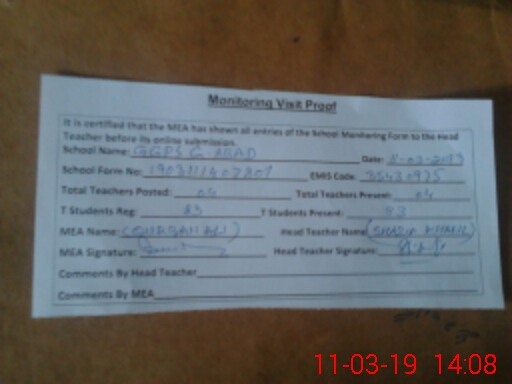 | Certified that this School was Inspected by the Undersigned MEA/DMO Today and the Information Stated Above is as Per Record. | |||||