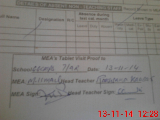 | Attendance Register | Head Teacher | MEA with School | Visit Proof |