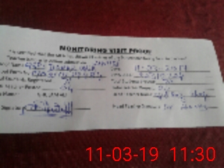 | Monitoring Date: 11-03-2019 | Start Time: 11-03-2019 11:00 AM | End Time: 11-03-2019 11:30 AM | Name of MEA: Gh**** Al**** | |