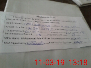 | Name: Mu**** YO**** Designation: (School Headmaster's/Headmistress's) PTC/JV Phone/Cell Number: 03**** |