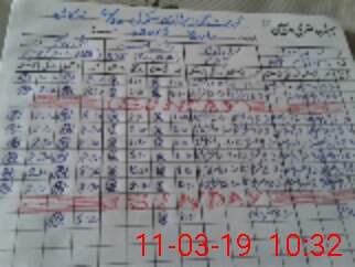 | CNIC | Full Name | Designation | R/C | Absence During Last Calender Month |